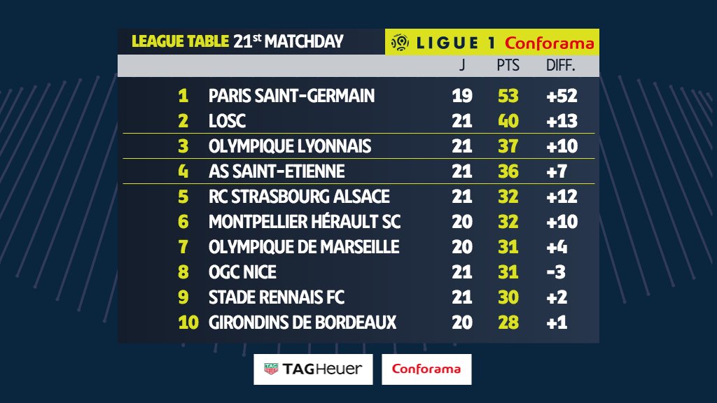 Ligue 1 table 11 12. Psg carved out a two point lead atop the ligue 1 conforama standings with an mbappeneymar powered 1 0 win in bordeaux. The 201011 ligue 1 season known as ligue 1 orange for sponsorship reasons was the 73rd since its establishment. Lille have won their last 4 home matches.